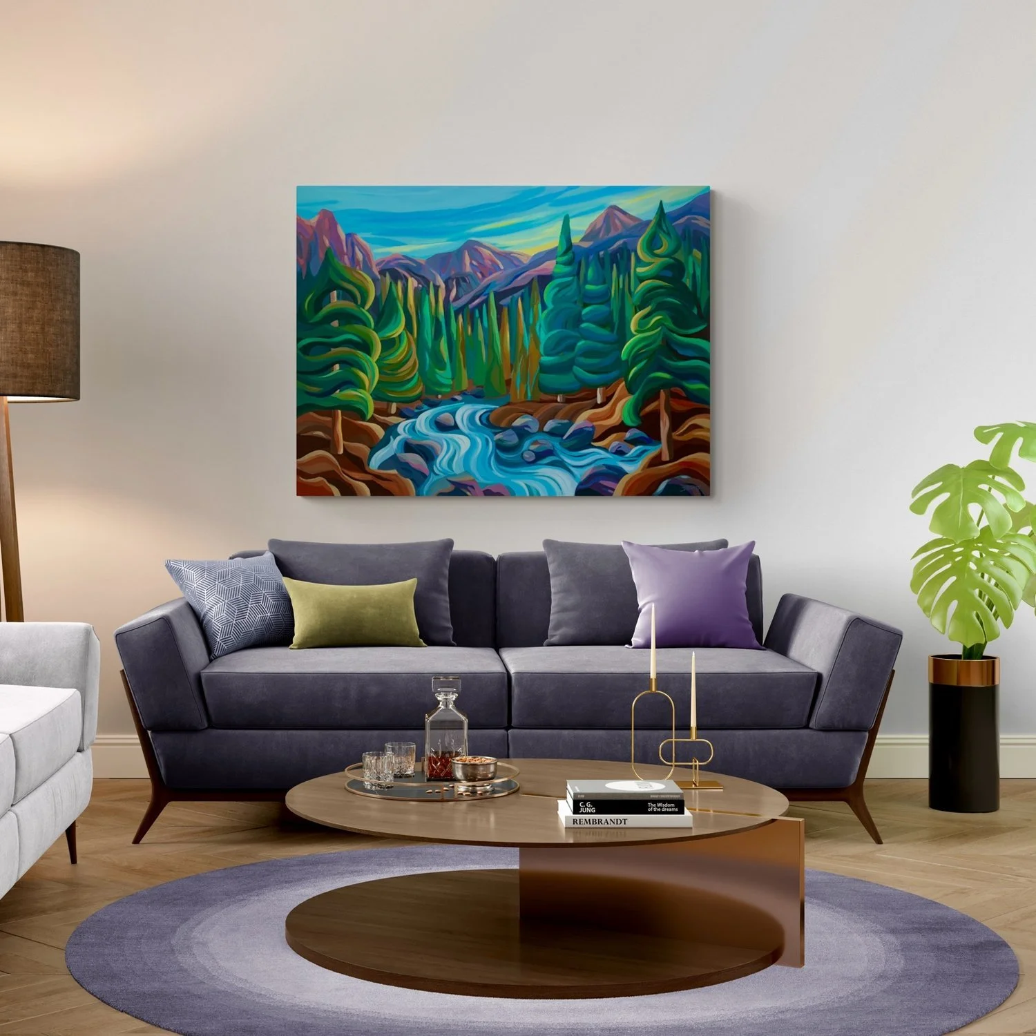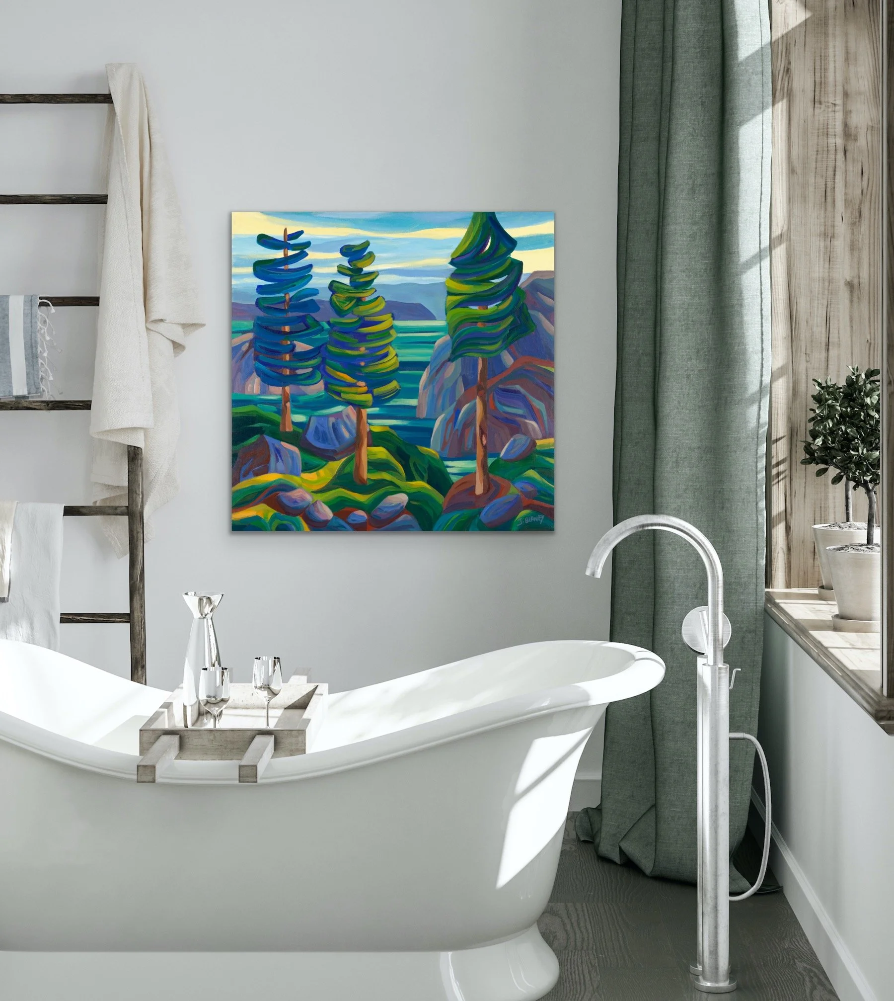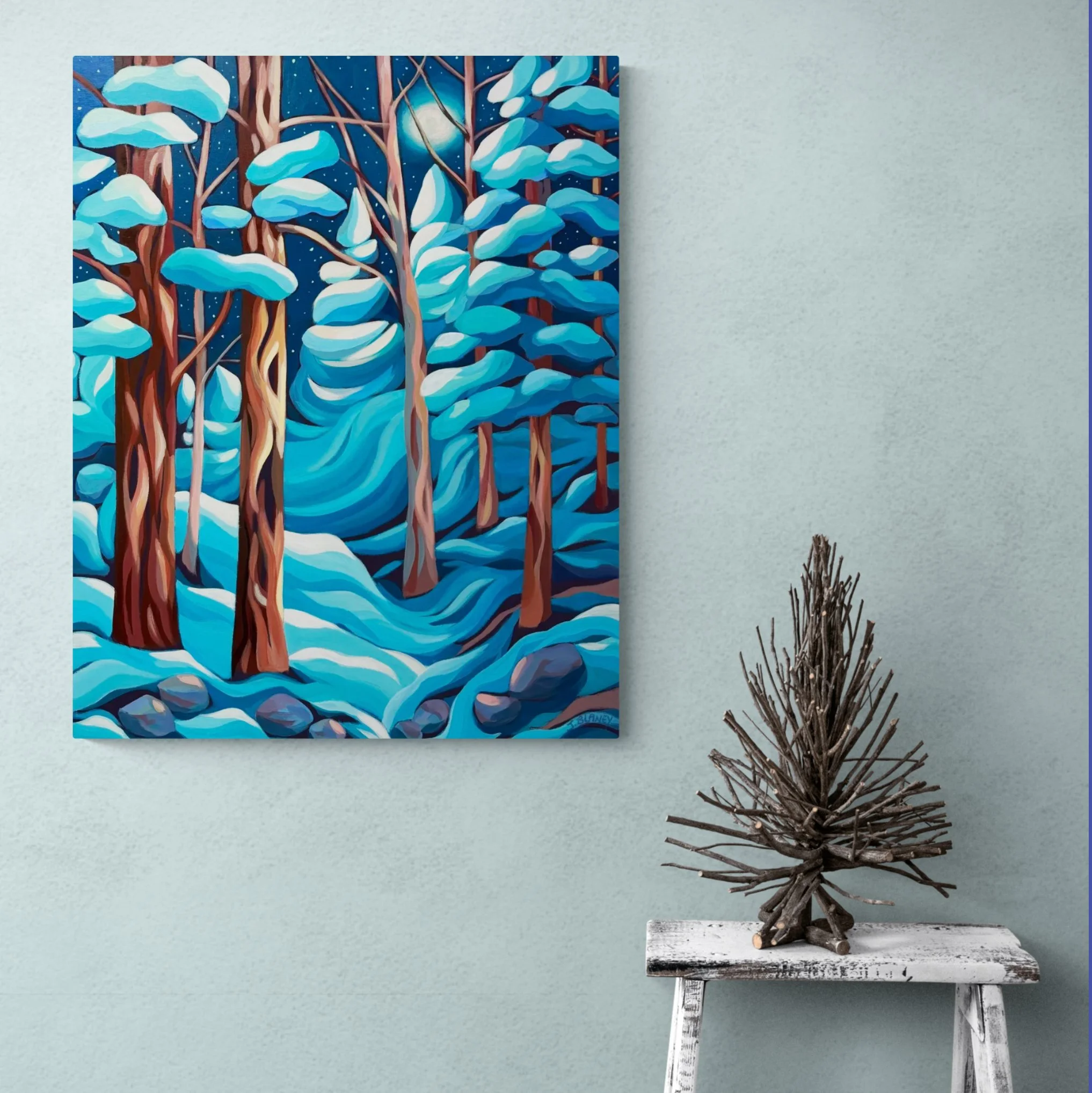 My work is rooted in the Canadian landscape, especially the forests of the Pacific Northwest. Through bold colour, expressive brushwork, and playful composition, I create spaces that feel joyful, light-filled, and open to interpretation.